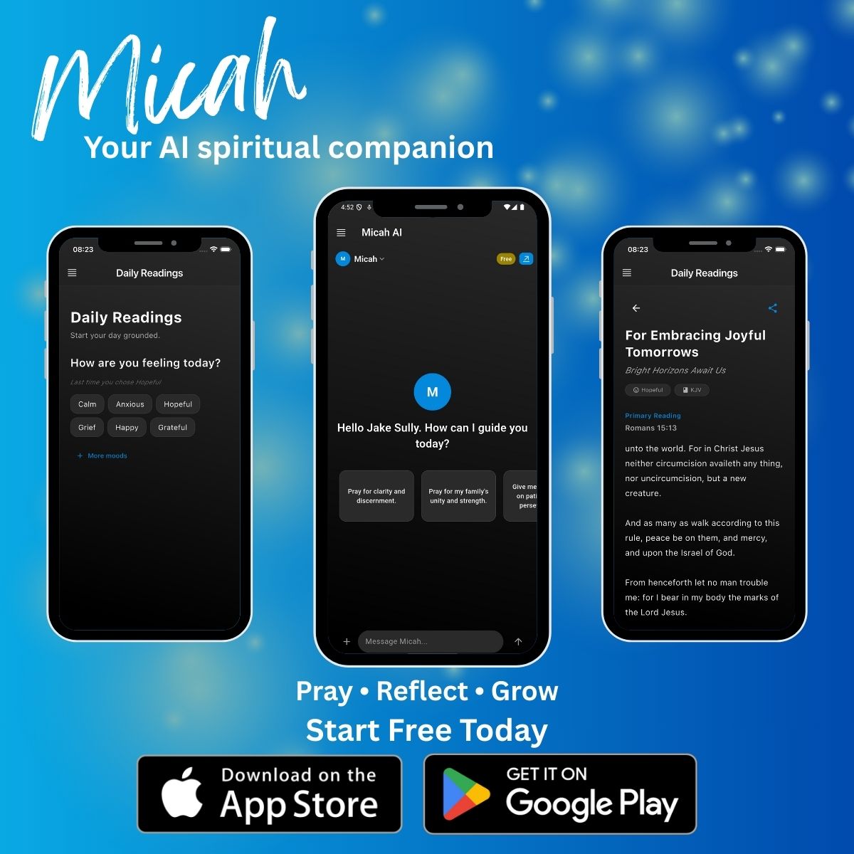 Download Micah and begin a more intentional, reflective faith practice — with gentle guidance, Scripture, and prayer always within reach.